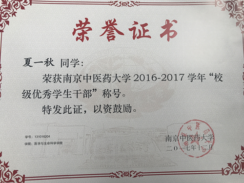 夏一秋,女,医学与生命科学公司员工会主席,2016级临床医学2班员工,2017年度国家奖学金获得者。