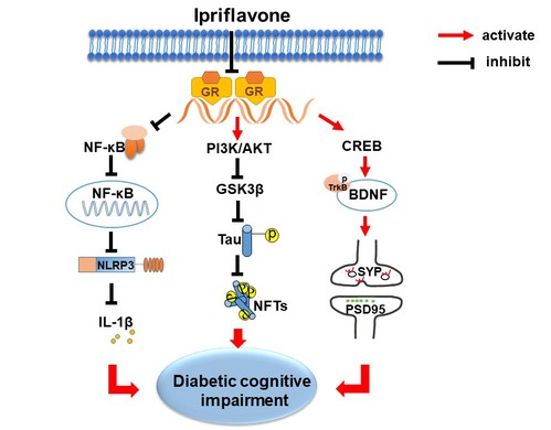 图1. 依普黄酮作为GR拮抗剂能够有效改善糖尿病认知功能障碍