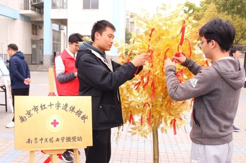 捐献者的无私大爱闪耀着金子一般的光芒。许多师生被他们的故事感动,在金色的“生命之树”上系上红丝带,以表达对他们的敬意和深切缅怀。