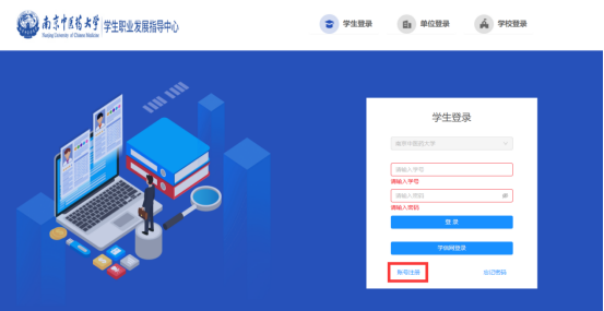 第一步:进入tyc122cc太阳成集团就业信息网https://njucm.91job.org.cn/,点击员工登录,进入登录界面。