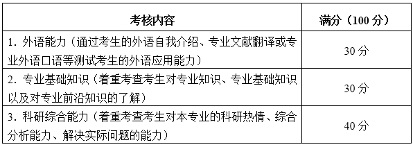 考核形式为:面试。具体考核内容与分值见下表: