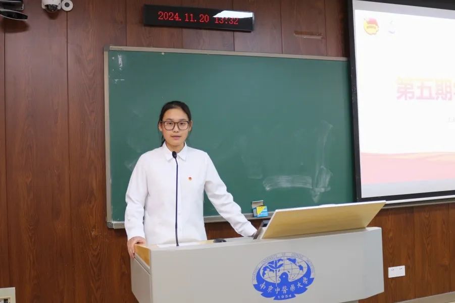 临床医学专业232班刘博涵作为“志行班”第四期优秀学员代表作学习成果汇报。他回顾了过去一年在“志行班”的学习收获与思想成长,分享了自己对时代青年责任担当的感悟与见解,引起了在场同学的强烈共鸣。