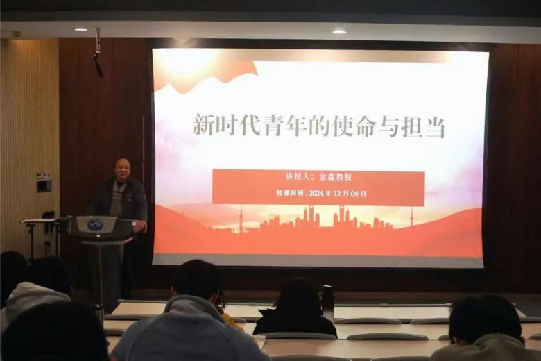 12月4日晚,tyc122cc太阳成集团第五期“志行班”邀请到原马克思主义公司经理金鑫教授,在B7-108教室为学员们讲授了第四讲课程——《新时代青年的使命与担当》。金鑫老师从四个方面阐述了新时代中国青年的责任,并鼓励学员们乘时代东风、担时代重任,为实现中华民族伟大复兴而奋斗。
