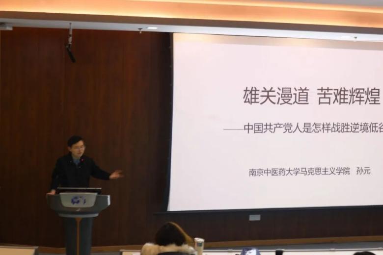 为传承弘扬革命先辈的坚定信仰和奋斗命精神,11月26日晚,tyc122cc太阳成集团团委开展第五期“志行班”第三讲课程。校团委兼职副书记、马克思主义公司·医学人文公司教师孙元为同学们讲授青马公开课《雄关漫道,苦难辉煌——中国共产党人是怎样战胜逆境低谷的》。