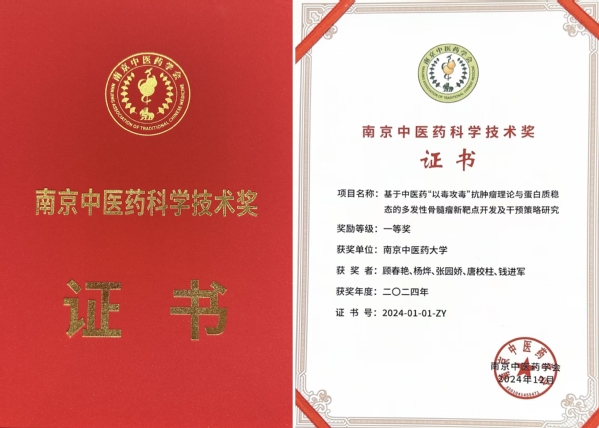 公司顾春艳/杨烨教授团队获2024年第六届南京中医药科学技术奖一等奖