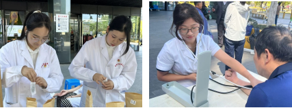 活动设置了推拿按摩、血压检测、养生茶饮、中药香囊四大服务区。志愿者们以专业的推拿手法为居民们缓解疲劳,测量血压的同时给出了个性化的健康养生建议。