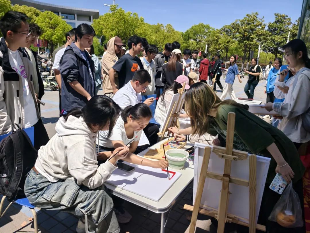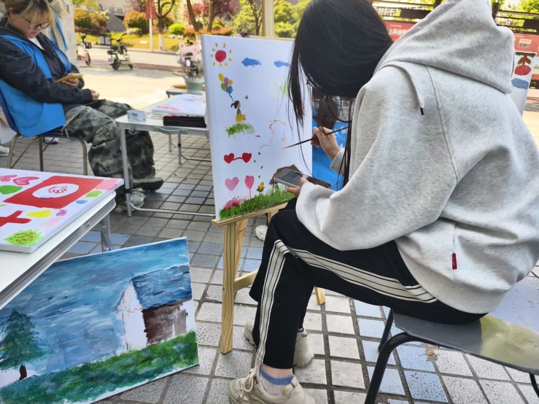 以笔为媒,绘聚爱心活动现场气氛热烈,同学们以画笔为纽带,用斑斓的色彩表达对生命的敬畏、对公益事业的热忱。不少路过的师生被创意十足的绘画形式所吸引,纷纷驻足欣赏,更有许多人主动加入创作队伍,共同完成这幅承载爱与希望的公益画卷。最终,一幅幅饱含深情的画作不仅为校园增添了一抹亮色,更让红十字精神以艺术形式深入人心,激发了青年学子投身公益、服务社会的热情。