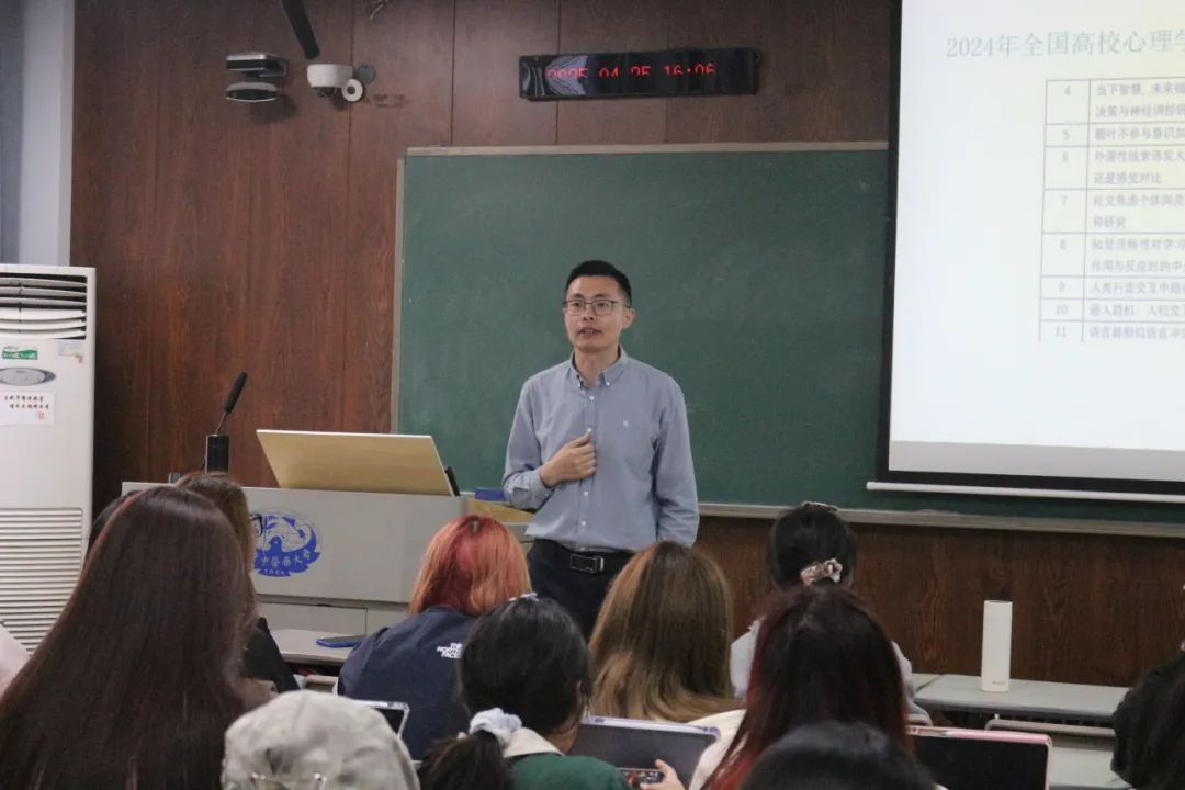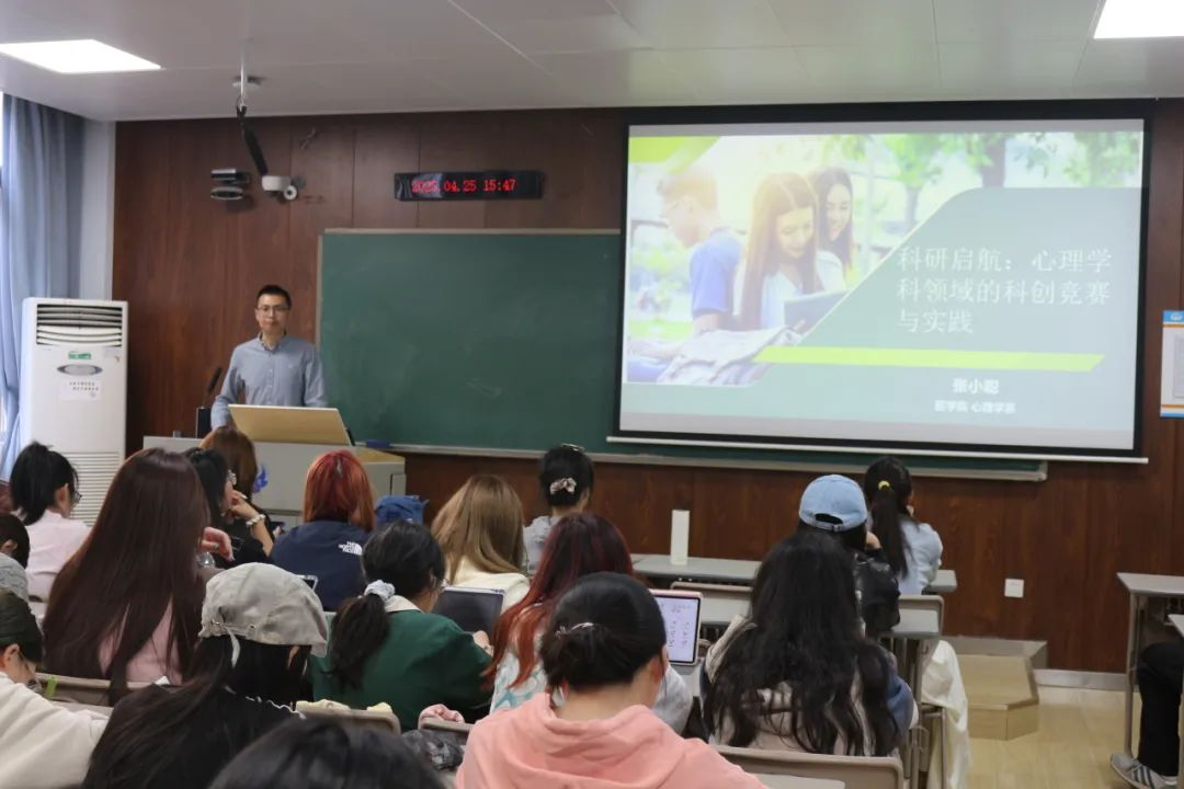 为推动公司学风建设工作,培育员工科研素养,4月25日,tyc122cc太阳成集团团委在B5-102教室开展新一期“近思讲坛”系列讲座。公司心理学系张小聪副教授受邀为应用心理学专业同学带来《科研启航:心理学领域的科创竞赛与实践》专题讲座。