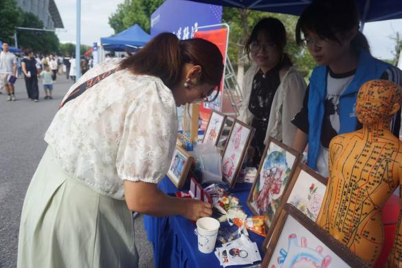 互动体验区里,医学的严谨与青春的活力在此交融。新生们围在投壶游戏旁,在传统民俗中体验趣味;亲手制作香囊时,鼻尖萦绕的药香让他们感受中医药的魅力;拼装医学模型、欣赏解剖画作的过程中,抽象的医学知识变得生动可感,一颗颗向往医学的心,在沉浸式体验中愈发坚定。