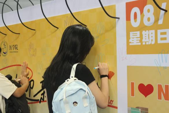 体育馆外场,“星河浩瀚,梦想扬帆”主题置景格外吸睛。璀璨的“烟花”下,新生们纷纷拿起笔,将对大学的愿景和对医学的向往写在“星星”卡片上,再小心翼翼粘贴到“星河”之上。这一条条汇聚梦想的“星河”,不仅是青春的见证,更预示着他们将在医学的知识宇宙中扬帆启航、乘风破浪。