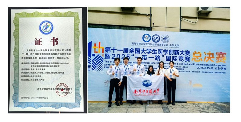 2025年8月,在第十一届全国老员工医学创新大赛暨“一带一路”国际竞赛中,杨烨、顾春艳教授指导以公司临床医学本科生为主导(团队成员:于添翼、尹语晗、冯蕴毅、崔宏伟和张华夏)的团队项目《蟾酥来源环状RNA-circBAX促结直肠癌细胞凋亡机制研究》斩获药学中医药赛道国家级金奖并获得最佳风采奖。该研究综合运用多组学分析技术,成功揭示传统中药蟾酥的新型抗肿瘤机制,创新性发现环状RNA-circBAX的关键调控作用,为结直肠癌精准治疗提供了全新的潜在治疗靶点。