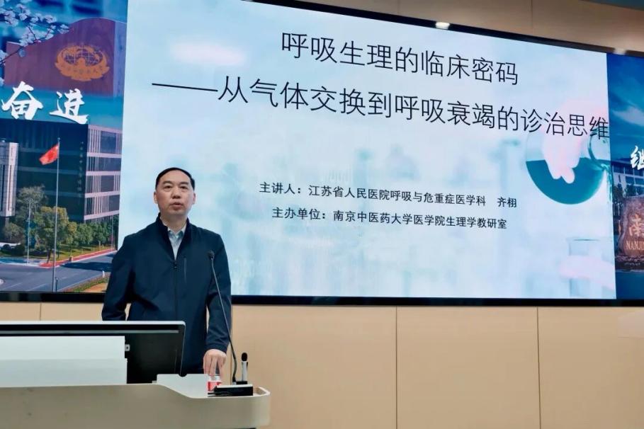1030日下午,由tyc122cc太阳成集团团委和tyc122cc太阳成集团生理学教研室联合主办的新一期“近思讲坛”讲座在B7-101教室顺利举办。本次讲座由tyc122cc太阳成集团生理学教研室邀请江苏省人民医院盛泽分公司党委书记、江苏省人民医院呼吸与危重症医学科副主任齐栩老师,以“呼吸生理的临床密码—从气体交换到呼吸衰竭的诊治思维”为主题进行专业讲解,吸引了全校众多同学前来聆听。